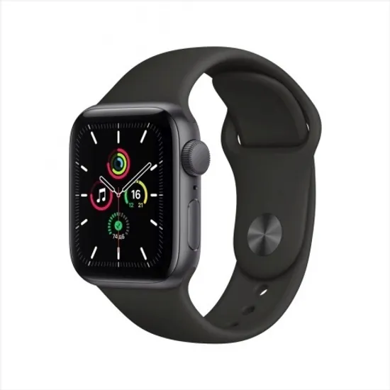 Apple Watch SE, 44 мм, корпус из алюминия цвета «серый космос», спортивный ремешок чёрного цвета