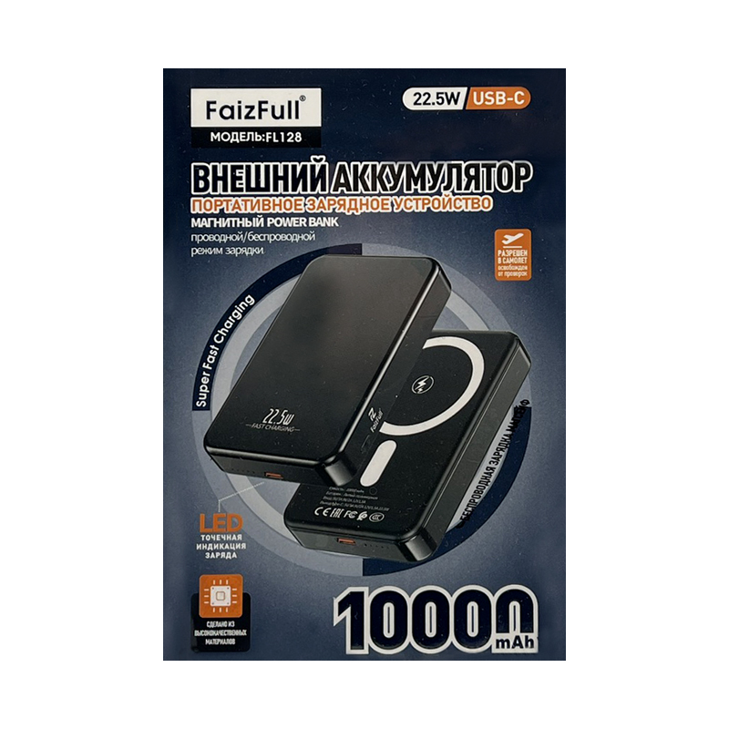 Внешний аккумулятор FaizFull 10000 FL128 черный с беспроводной зарядкой